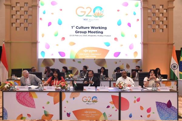 जी-20 संस्कृति कार्य समूह (सीडब्ल्यूजी) की पहली बैठक गुरूवार को खजुराहो के महाराजा छत्रसाल कन्वेंशन सेंटर में हुई। केन्द्रीय सामाजिक न्याय एवं अधिकारिता मंत्री डॉ. वीरेंद्र कुमार तथा केन्द्रीय संस्कृति राज्य मंत्री श्रीमती मीनाक्षी लेखी ने प्रथम-सत्र को संबोधित किया।